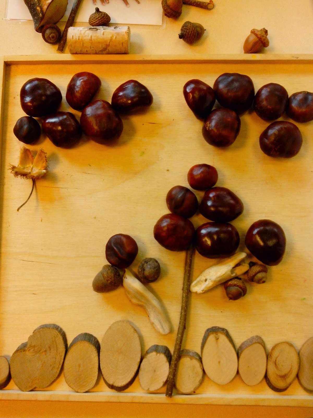 Der Herbst kommt und im Kindergarten werden Mandalas gelegt. Alles wird gesammelt und in alten Puzzlerahmen zu hübschen Bildchen arrangiert.
