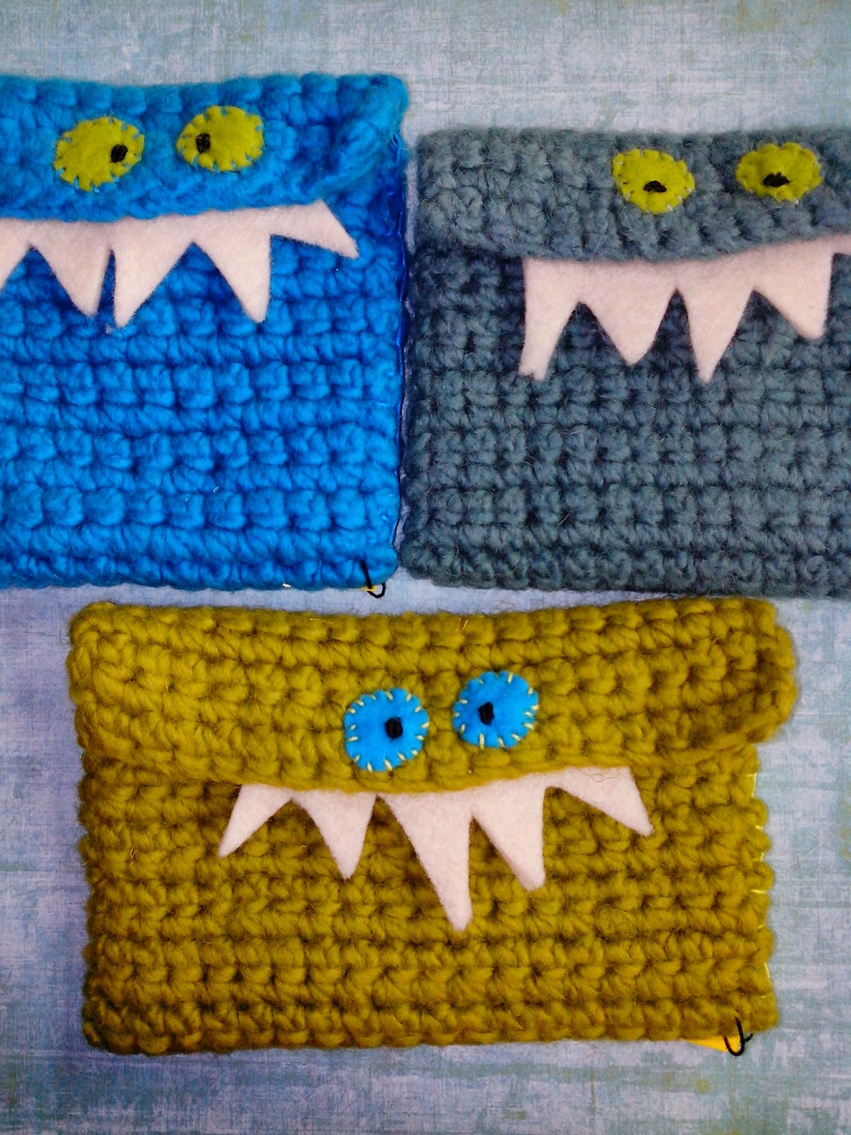 Und die gehäkelten-verfilzten Monster-Täschchen auch...