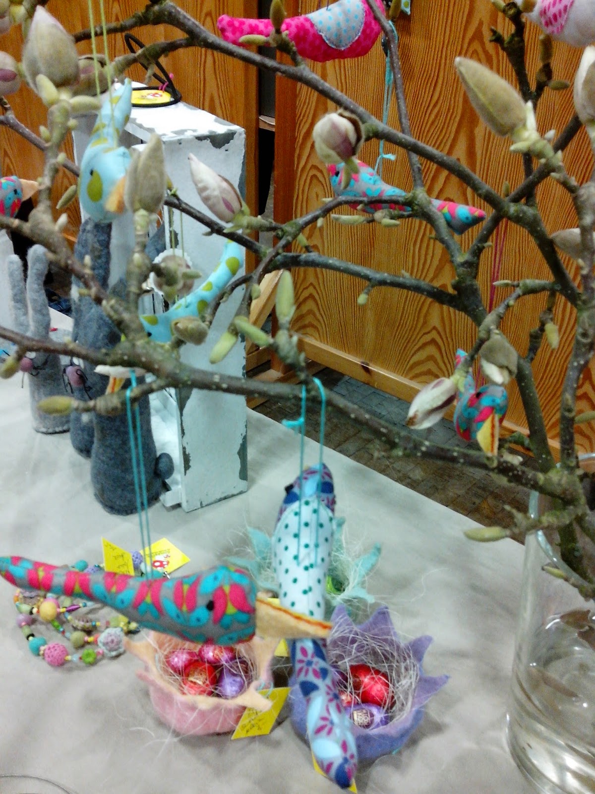 Letztes Wochenende hatte ich einen Stand auf dem Ostermarkt. Ich hatte riesen Glück, das mein Stand drinnen war, denn es war so kalt, das man mit den anderen, die draußen einen Stand hatten, Mitleid hatte.Wie immer waren nette Leute da, viele Bekannte, neue Kontakte und schöne Gespräche.