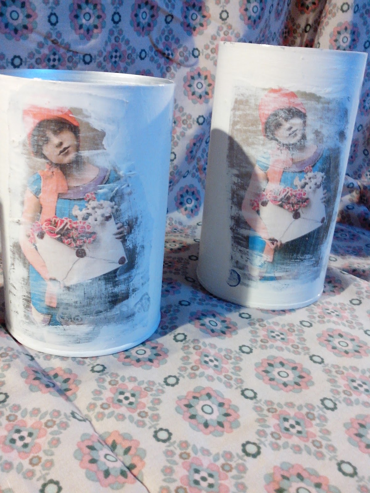 Da melde ich mich mal wieder! Und da ich nicht untätig war, zeige ich meine neuen Schätze:Ich habe Dosen und Schachteln bemalt, mit Bildchen beklebt, bestempelt und wieder vintage-shabby-chic-mäßig abgeschmirgelt.