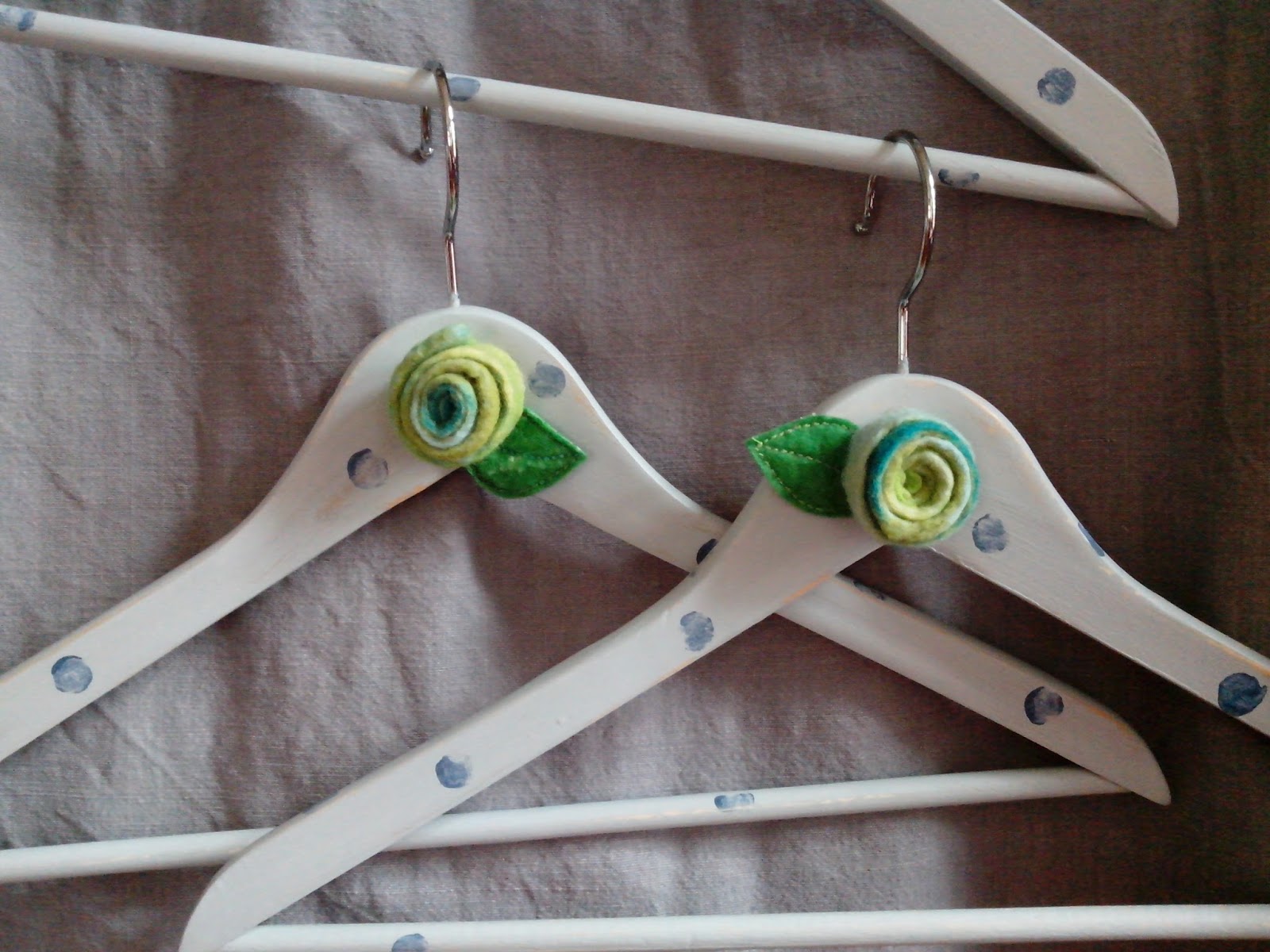 Die alten Kleiderbügel wurden von mir bepinselt, bestempelt und angschliffen.