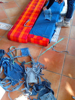 Meine Mutter kam auf die Idee für den neuen Bezug alte Jeanshosen zu nehmen. Also startete ich einen Aufruf...