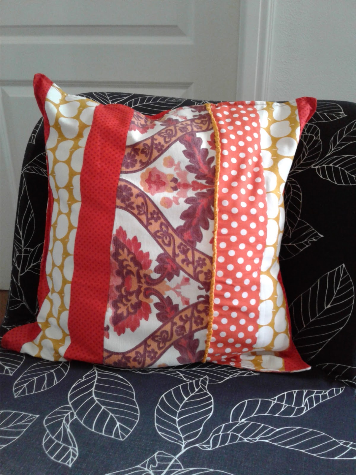 hatte ich das Bedürfnis den Vorbesitzern meines Wohnwagens eine kleine Erinnerung an ihr Schätzchen zu nadeln. Also habe ich ein Patchworkkissen genäht, indem die alte Retro -Gardine in orange nochmal recycelt wurde. Mir gefällt die Stoffauswahl so gut, ich muss mir auch noch solche Kissen nähen! Und die Farbkombi passt super zu meinem renovierten Flur....zeig ich später mal....Und ich habe meine Pfaff wieder, der Greifer war schon wieder verstellt und nähen machte echt kein Spaß, ständig riss der Faden. Jetzt bin ich vorsichtig und nähe die dicken Sachen doch lieber mit der Alten. Und freue mich die neuen JerseyStoffe hoffentlich wieder besser vernähen zu können, es warten noch ein paar Schnittchen auf mich.