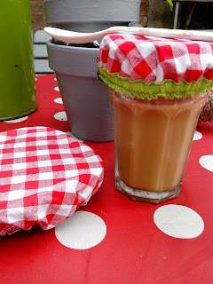 Die Häubchen habe ich aus baumwollbeschichtetem Wachstuch genäht...Echt praktisch gegen Fliegen. Auch in etwas größer super statt Alufolie. Einfach über den Resteteller und ab in den Kühlschrank.